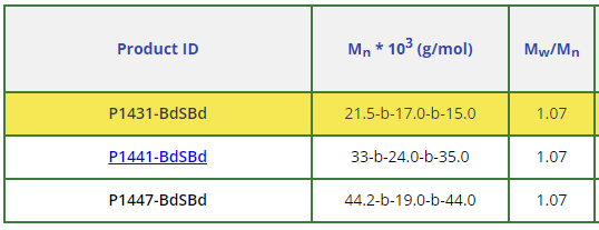 聚(1,4-丁二烯)-b-聚(苯乙烯)-b-聚(1,4-丁二烯)产品: